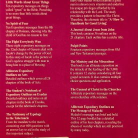 Dean Weaver has been preaching and writing for over 50 years. He is excellent at alliteration and he gives you some meat too. If you like John G. Butler’s books you will love Dean Weaver’s!
